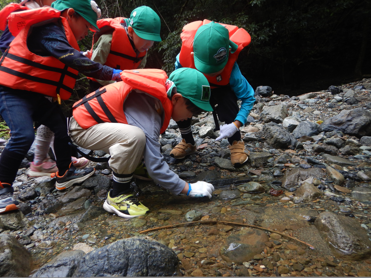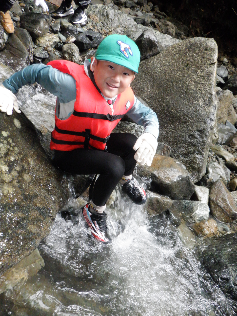出発前から緊張している様子の子どもたちでしたが、沢に入る「あ!カニいた」