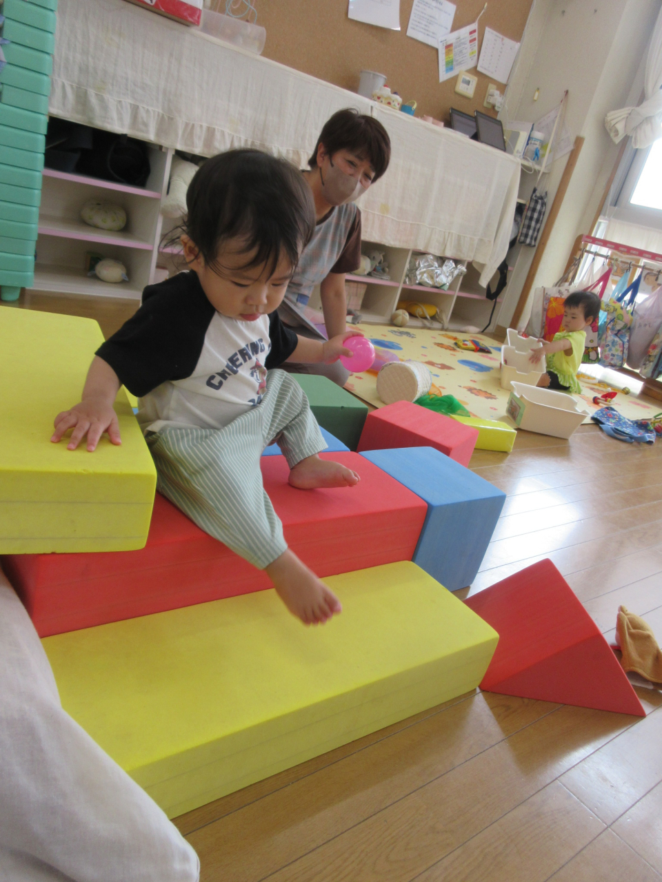 大型のソフトブロックを用意してみると、ハイハイで勢いよく登ったり