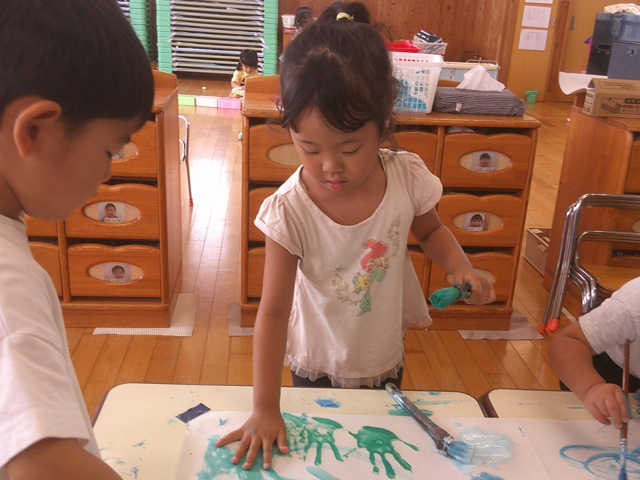 固く大きくなりすぎてしまったものは野菜スタンプにして触れ合いました