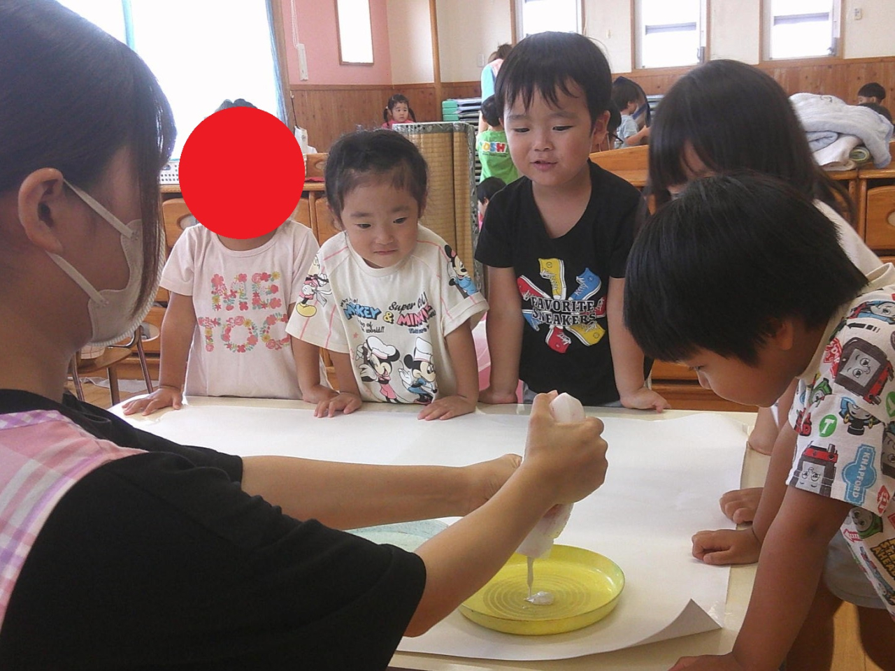 「大きいのできてる」「こっちにもある」と保育教諭や友だちに教え合う姿が見られました