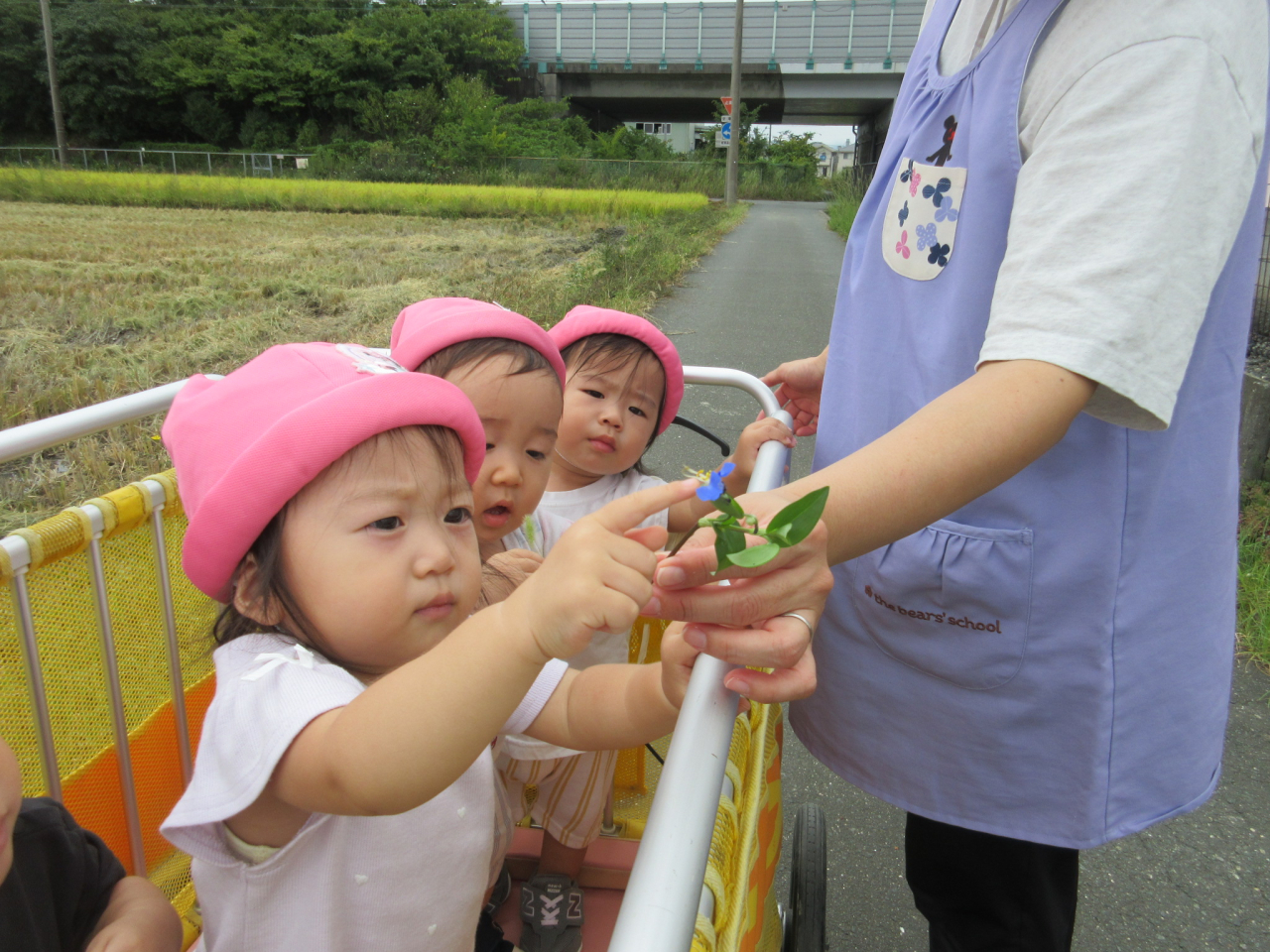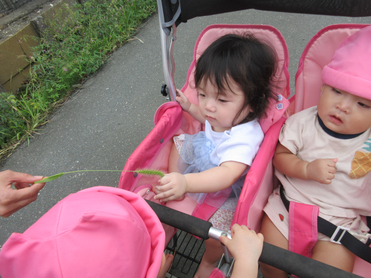 こもも組さんは、お散歩カーに乗って近くに探検へ行ったり、園庭に出て
