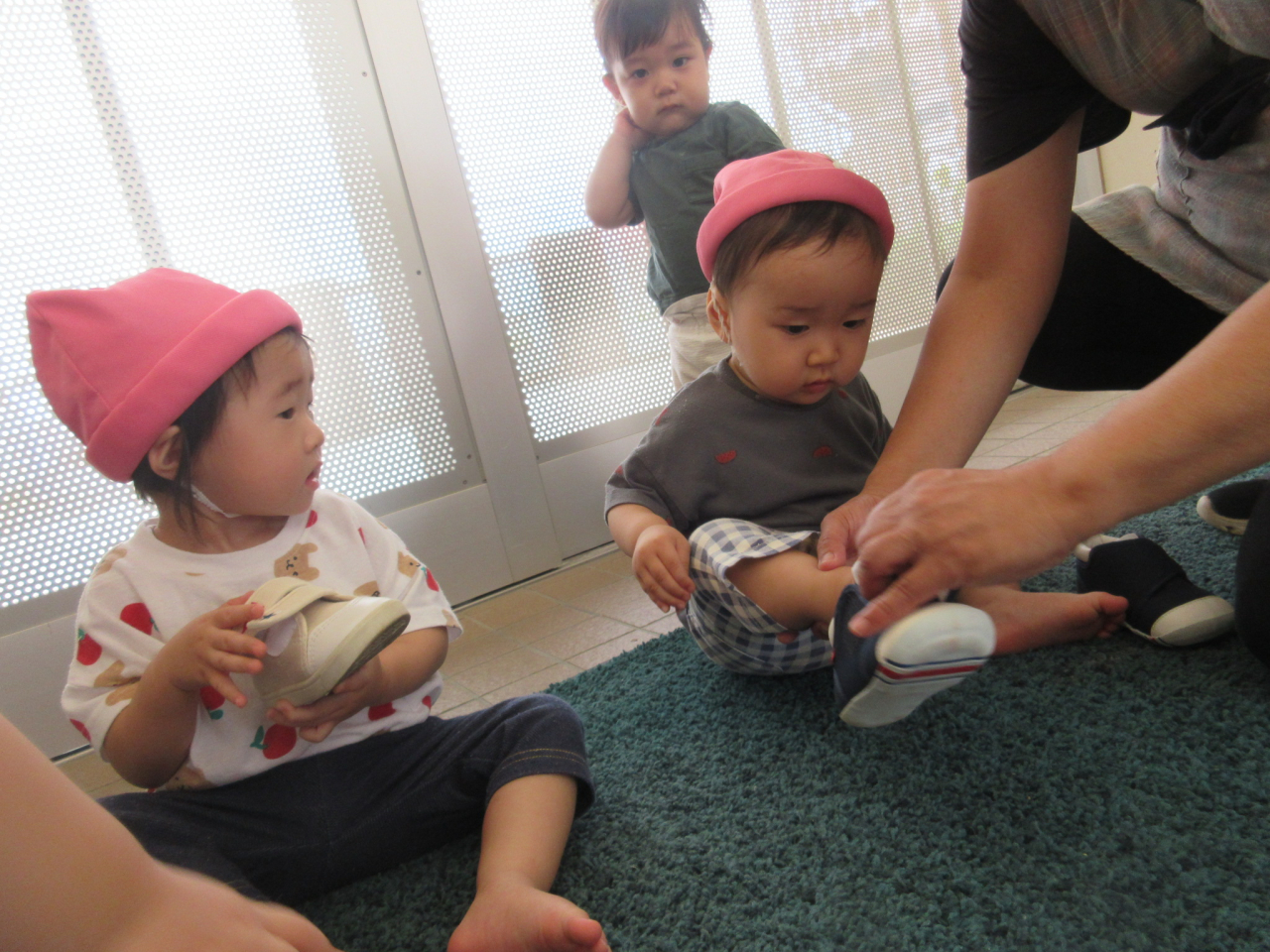慣れてくると、嬉しそうな笑顔で保育者とハイハイしたり歩いたりをたのしんでいます