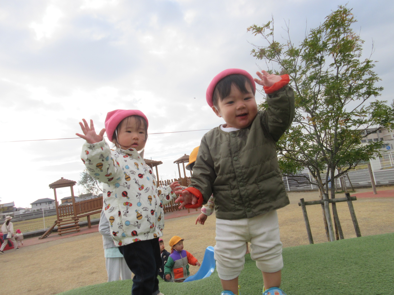 自分で歩行やハイハイで移動するようになった子どもが増え、園庭に出ると