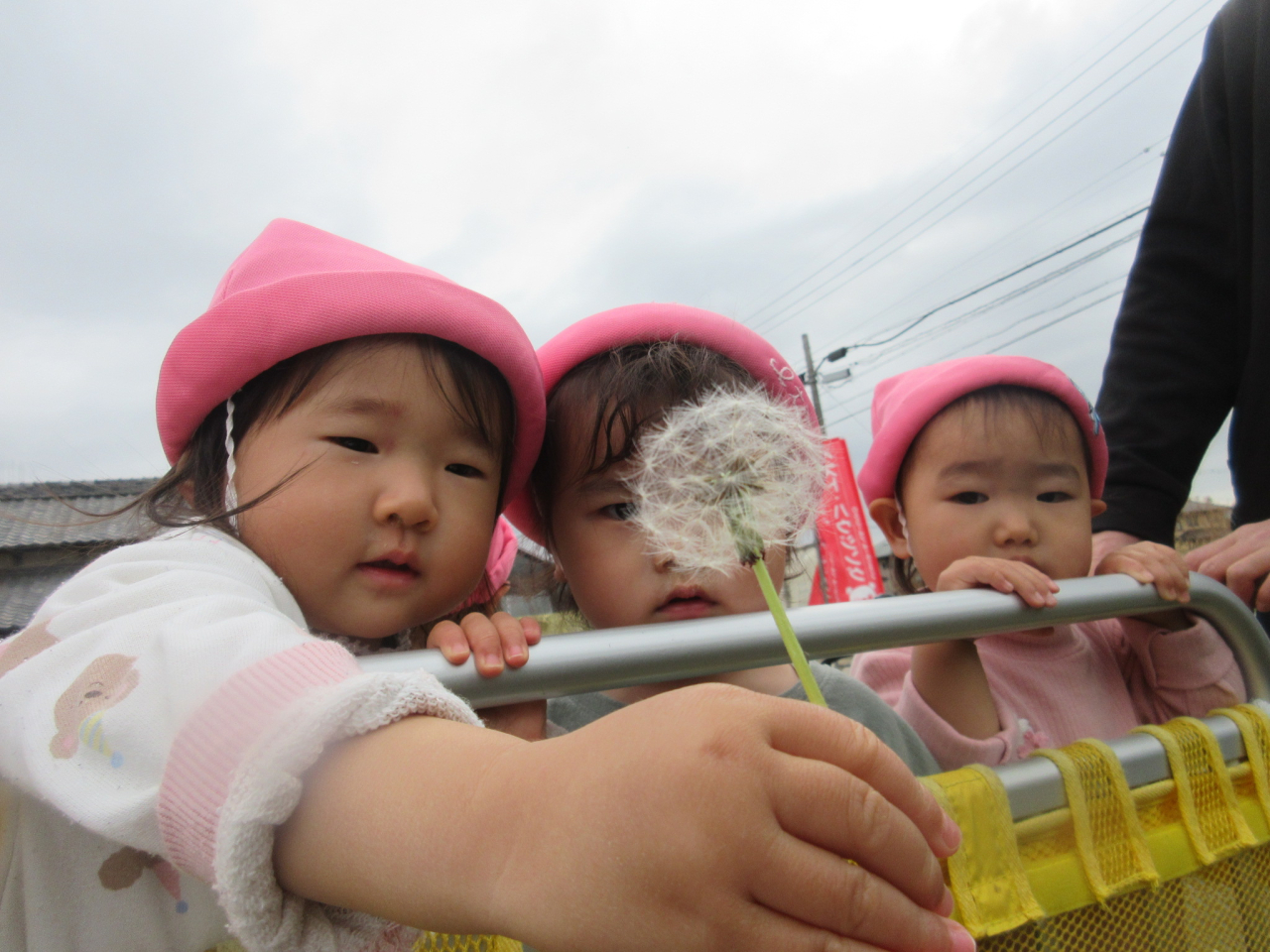 つくしやたんぽぽなど春の自然に触れたり、匂いを嗅いだりしています