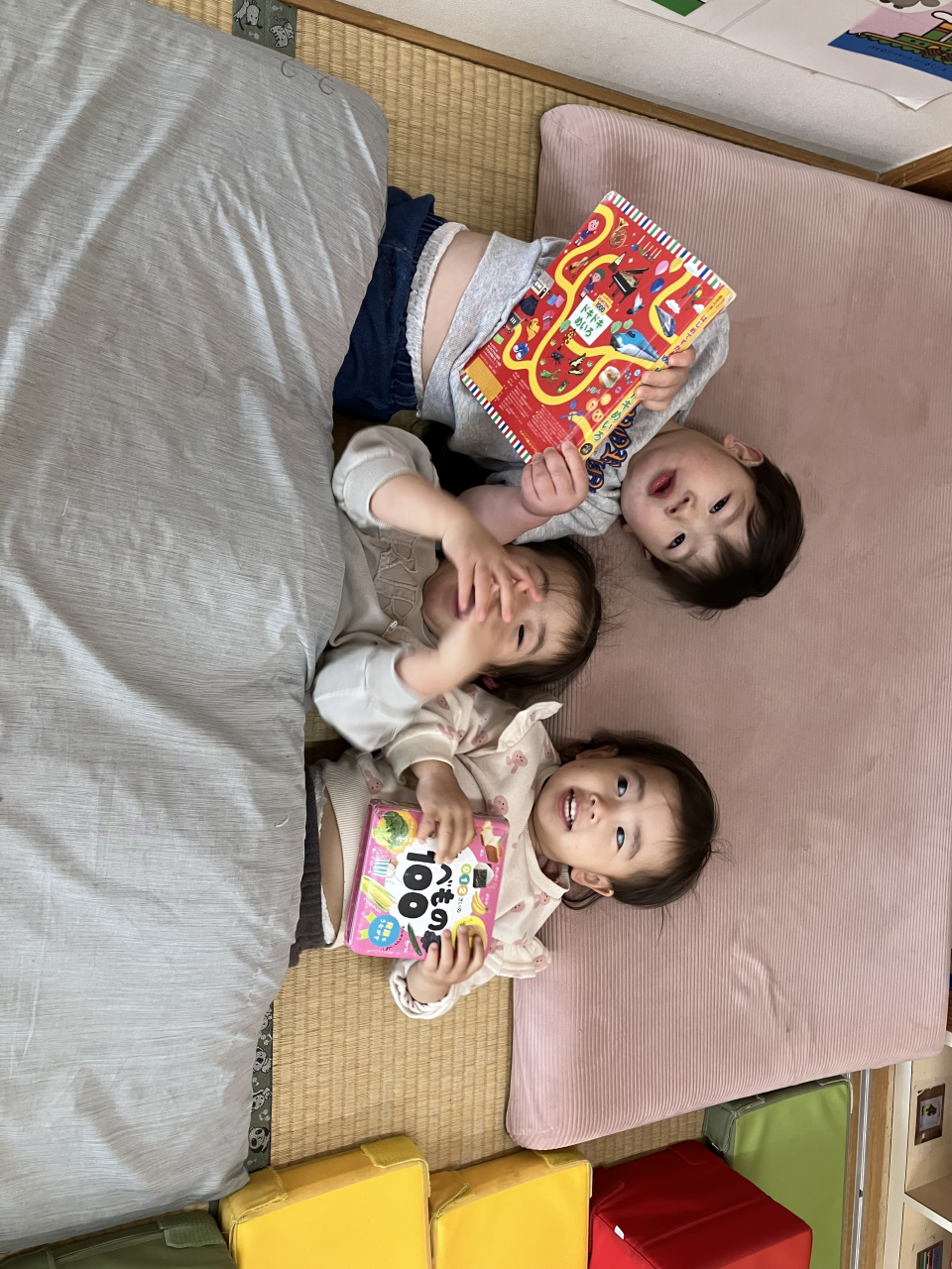 子ども達も進級式で新しい帽子をもらい、みかん・れもん組に進級です