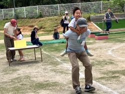 毎年恒例の貸しもの借り物競争を最後に楽しみます。子ども達の意外な姿も見れました。