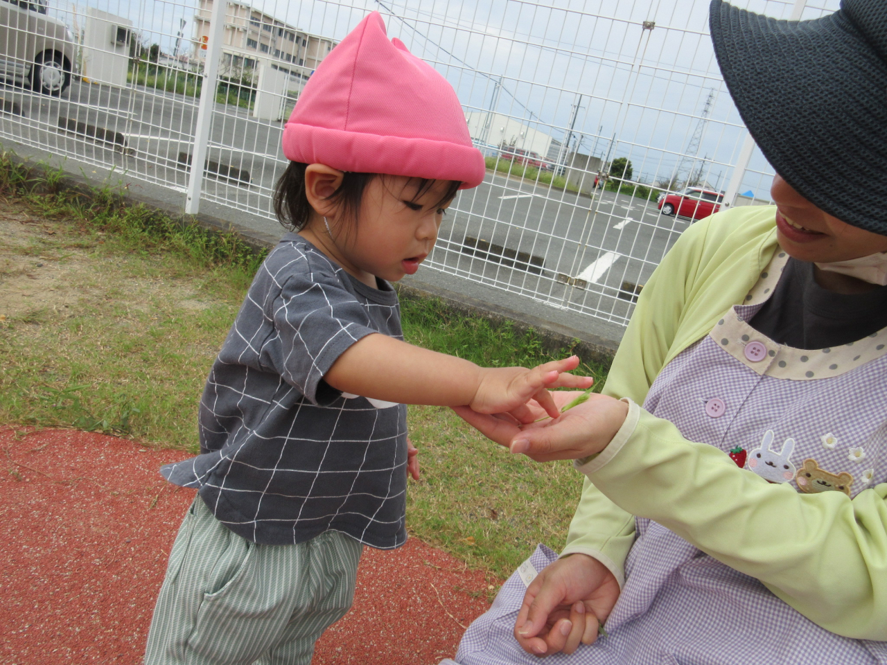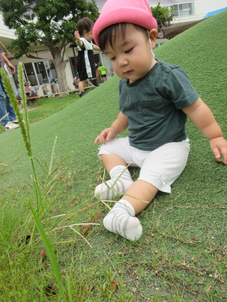 こもも組さんは、お散歩カーに乗って近くに探検へ行ったり、園庭に出て