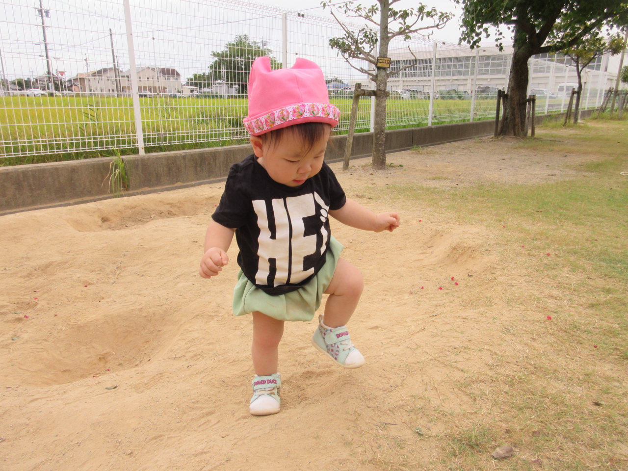 慣れてくると、嬉しそうな笑顔で保育者とハイハイしたり歩いたりをたのしんでいます
