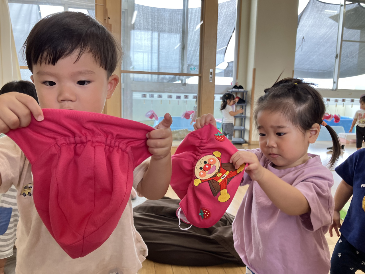 おやつを食べ終わるとすぐに帽子を取りにいき外へ行きたいと準備を始めるもも組さん