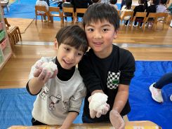 鏡餅は年神様が座るんだってと相談しながら作った鏡餅!!最高です。子どもたちの主体性を感じられる活動でした。